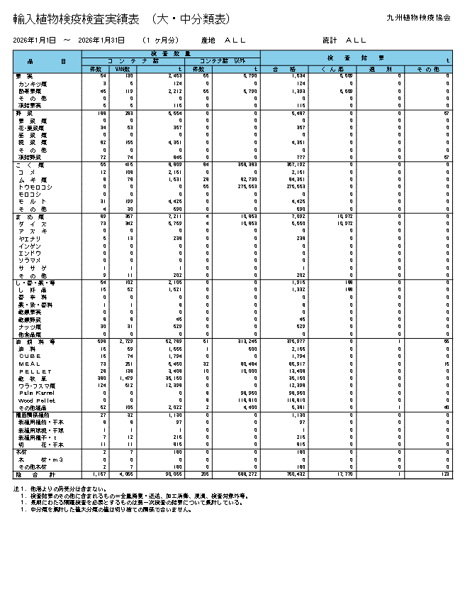 植物輸入、植物検疫の手続きを行う九州植物検疫協会の統計データ