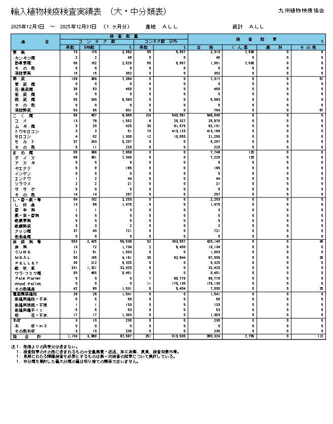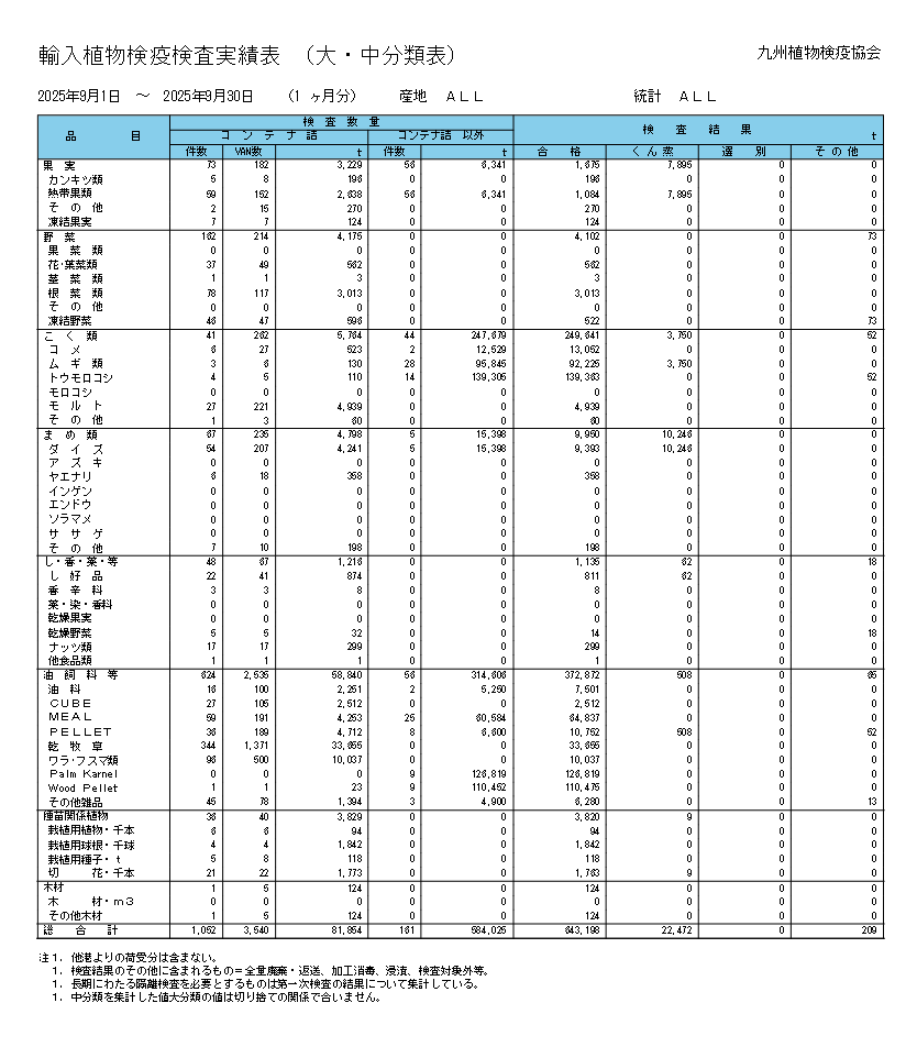 植物輸入、植物検疫の手続きを行う九州植物検疫協会の統計データ